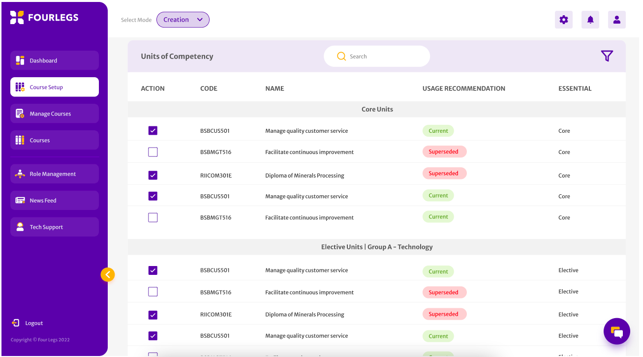 WOW! Ive used a number of LMS’s as a student and a trainer/compliance officer for RTO’s including TAFE. I can honestly say Four Legs is leaps and bounds ahead!